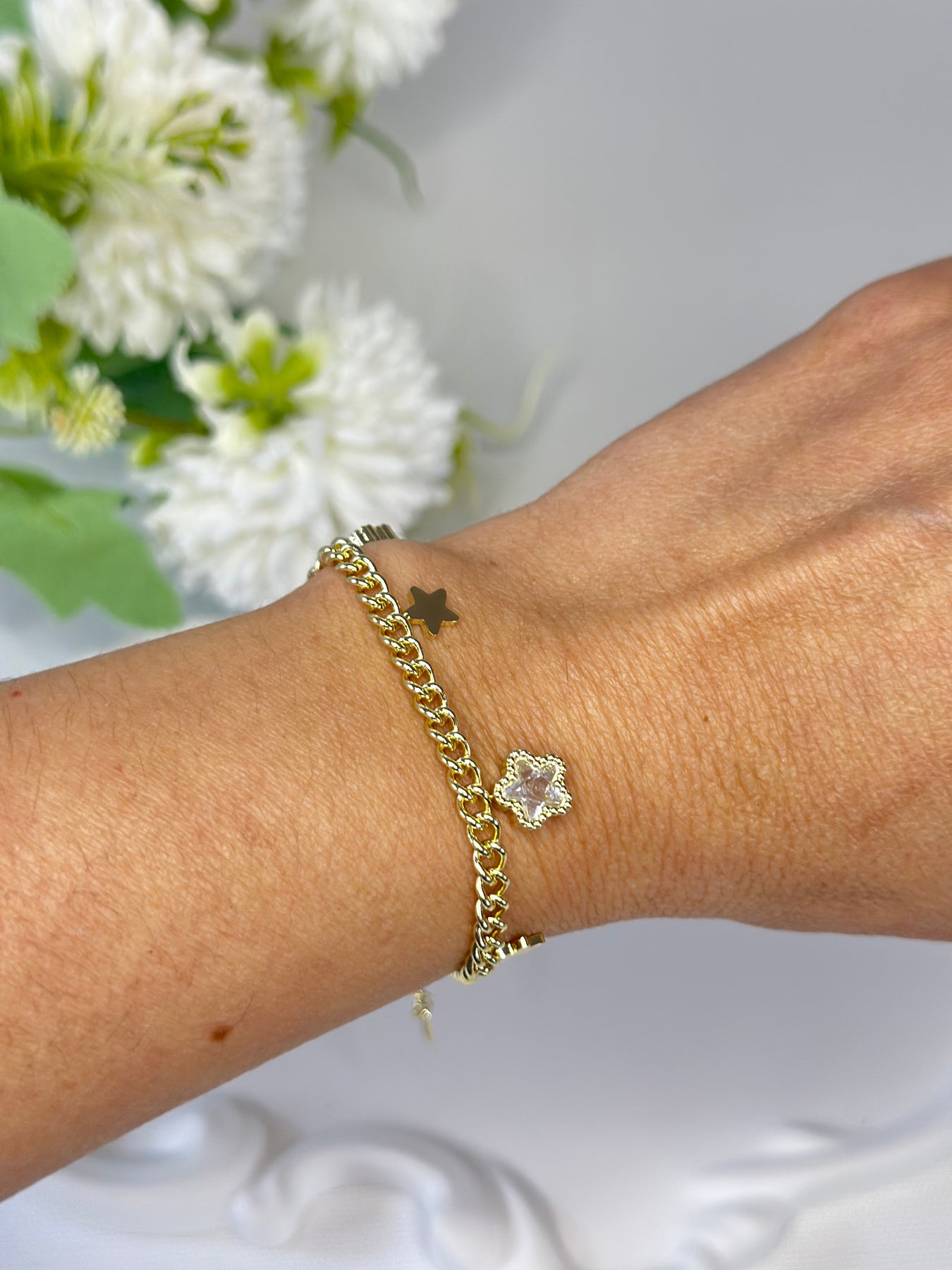 Çelik Taşlı Çiçek Bileklik