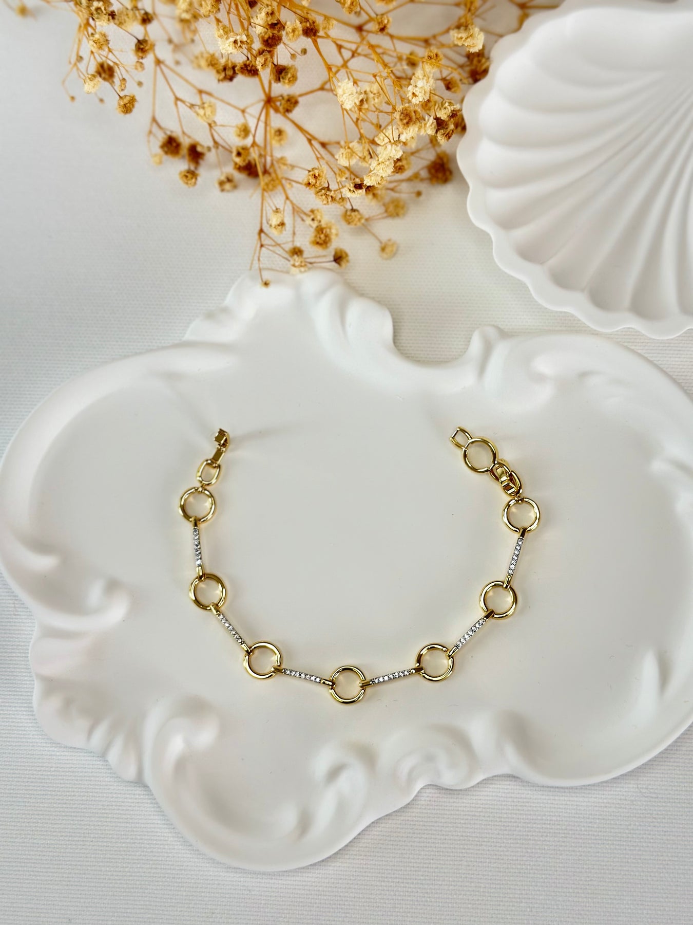 Gold ve silver tonlarının uyumuyla zarif bir ışıltı sunar. Zirkon taş detaylarıyla her kombine şık bir dokunuş katar. Paslanmaz çelik yapısı sayesinde uzun süre parlaklığını korur.