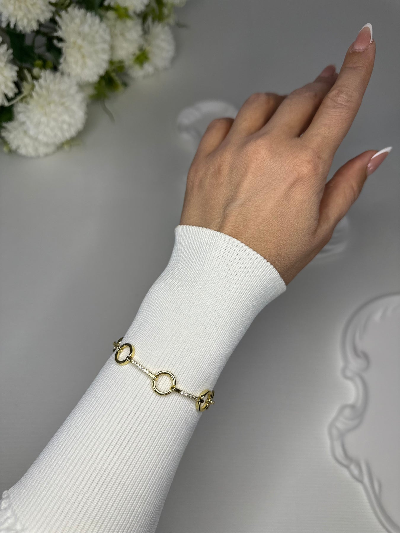 Zirkon Taş Detaylı Halkalı Çelik Bileklik