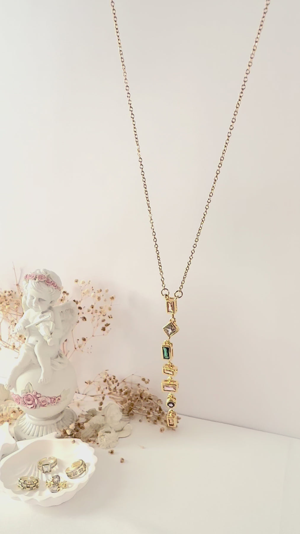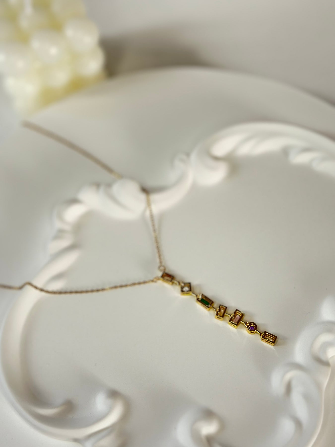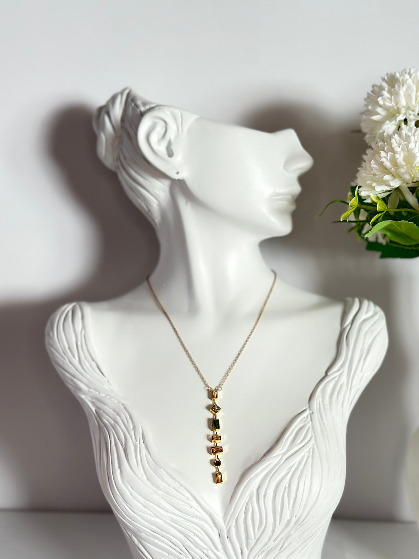 ✨ Detay: Renkli taş süslemeli uzun kolye ucu