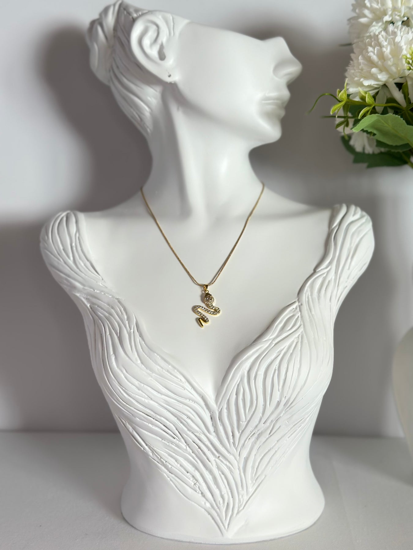 Cesur ve dikkat çekici tasarımıyla öne çıkan bu yılan figürlü kolye, güçlü bir stilin sembolü. Parlak taş detaylarıyla zarafeti güçle birleştirir, özel günlerde olduğu kadar günlük kombinlerde de fark yaratır.