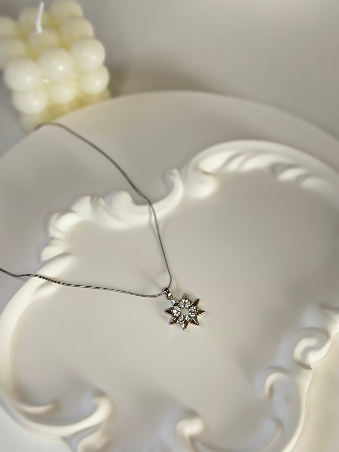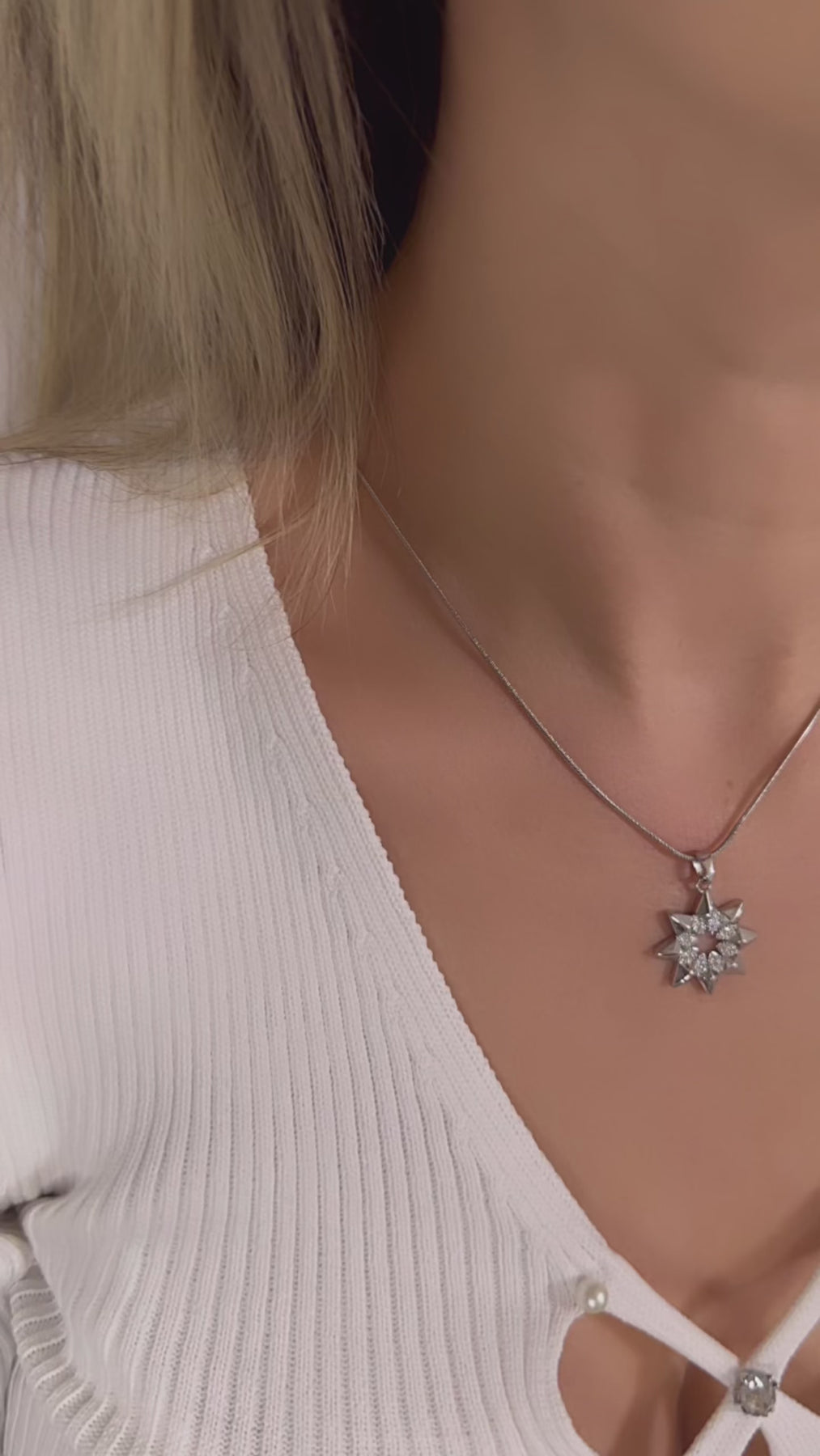 Işıltısıyla dikkat çeken bu yıldız kolye, zarafet ve enerjiyi bir araya getiriyor. Parlak taş detaylarıyla boynunuzda ışık gibi parlayan bu tasarım, hem gündelik şıklığa hem özel anlara mükemmel uyum sağlar.