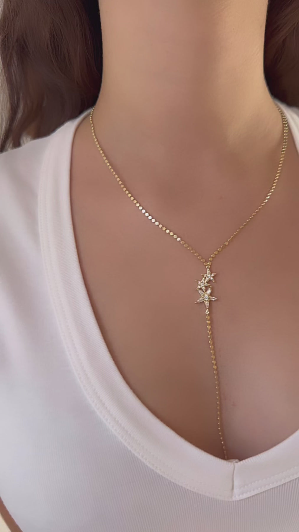 ✨ Detay: Çift yıldız taşlı uzun kolye