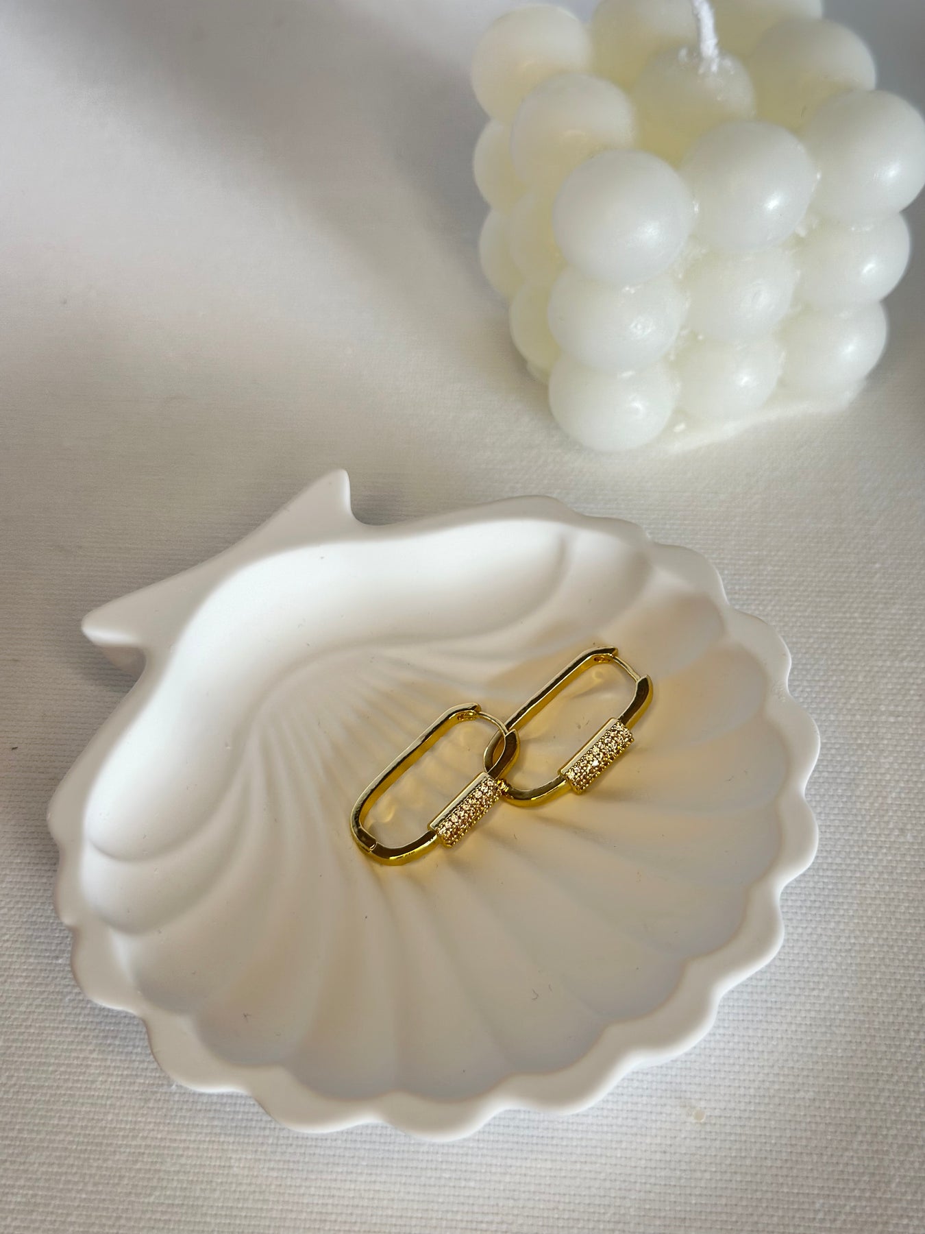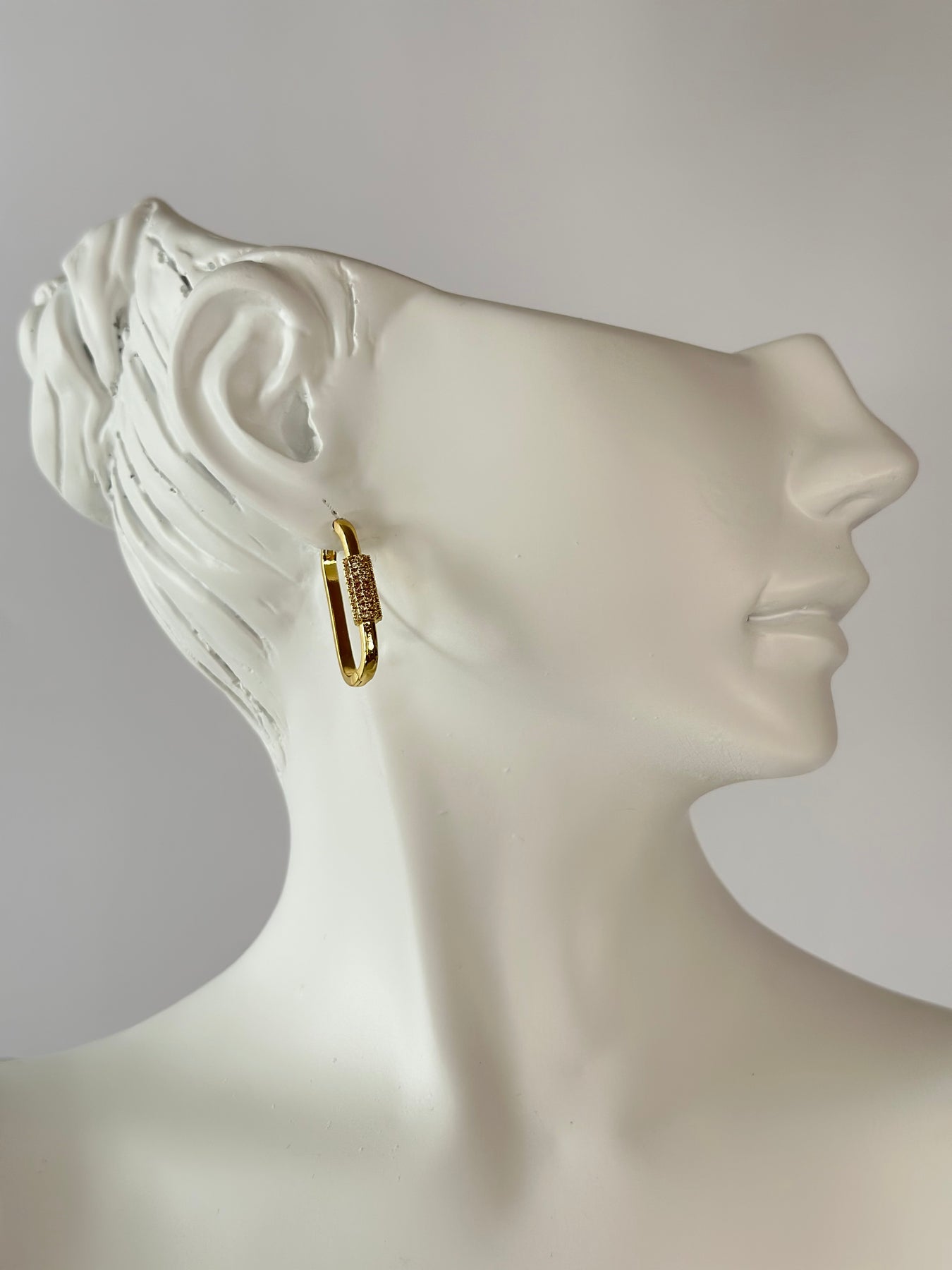 Modern zarafetin en sade hali! Bu dikdörtgen formdaki gold çelik küpeler, pırlanta ışıltısındaki taş detaylarıyla minimal ama etkileyici bir görünüm sunar. Günlük kombinlerden gece davetlerine kadar her stile kolayca uyum sağlar.