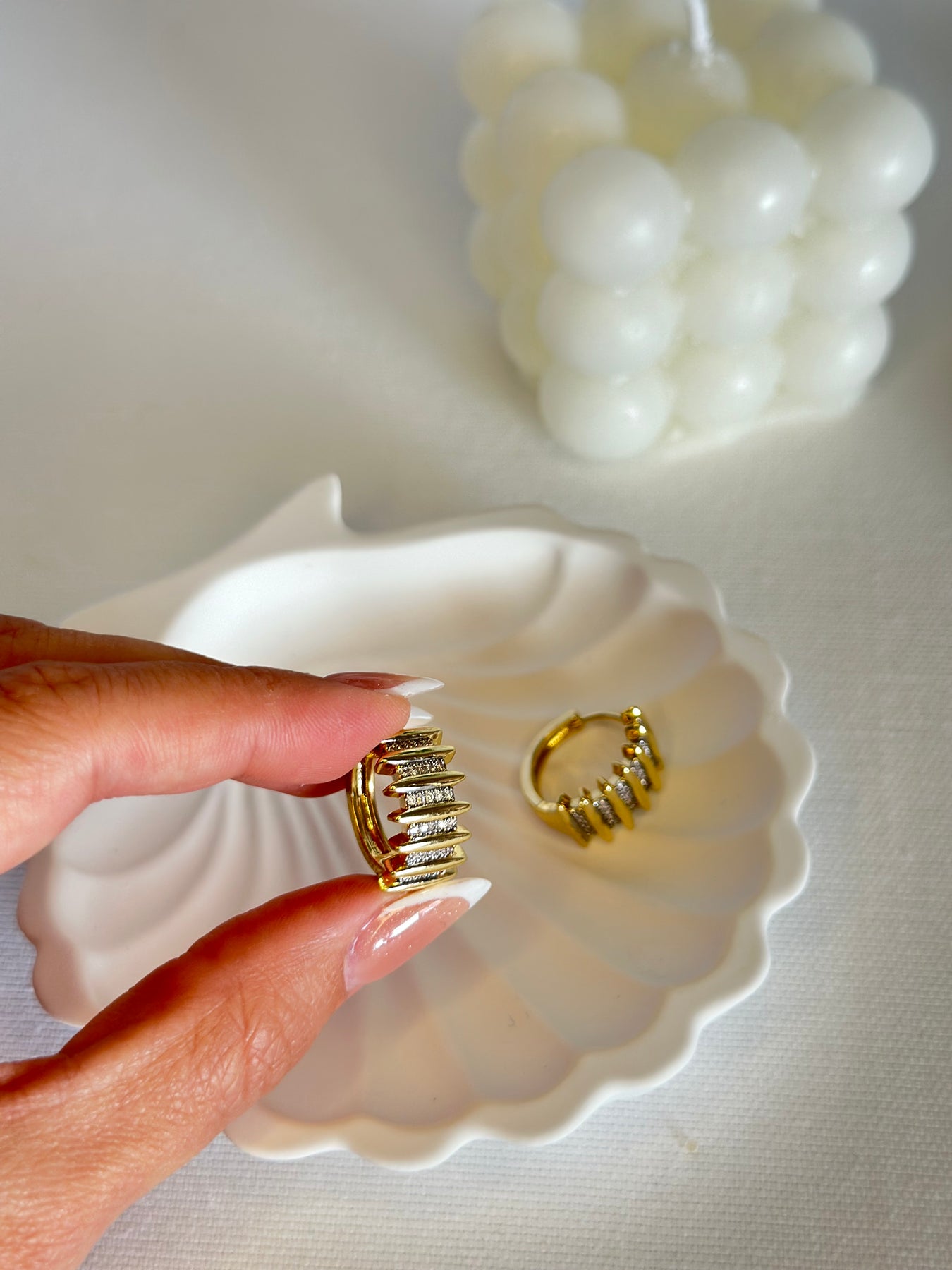 Geometrik hatları ve zarif taş detaylarıyla dikkat çeken bu gold çelik halka küpe, klasik formu modern bir dokunuşla yeniden yorumluyor. Parlak yüzeyiyle ışığı mükemmel şekilde yansıtarak her kombine güçlü bir şıklık katar. Günlük kullanımda da özel davetlerde de göz alıcı bir tamamlayıcıdır.