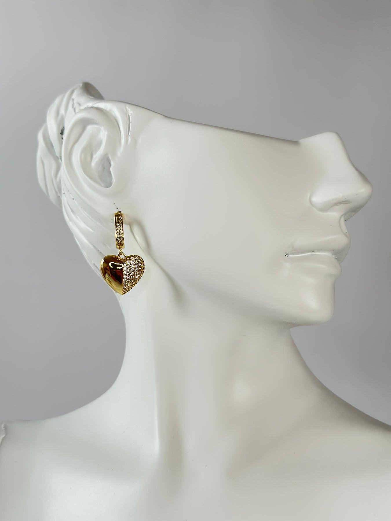 Parlak gold yüzeyi ve taşlı kalp detayıyla dikkat çeken bu çelik küpe, zarafetiyle her stile uyum sağlar. Kalp formunun modern yorumu olan bu tasarım, ışıltılı detaylarıyla hem gündüz hem de gece kombinlerine romantik bir dokunuş ekler.