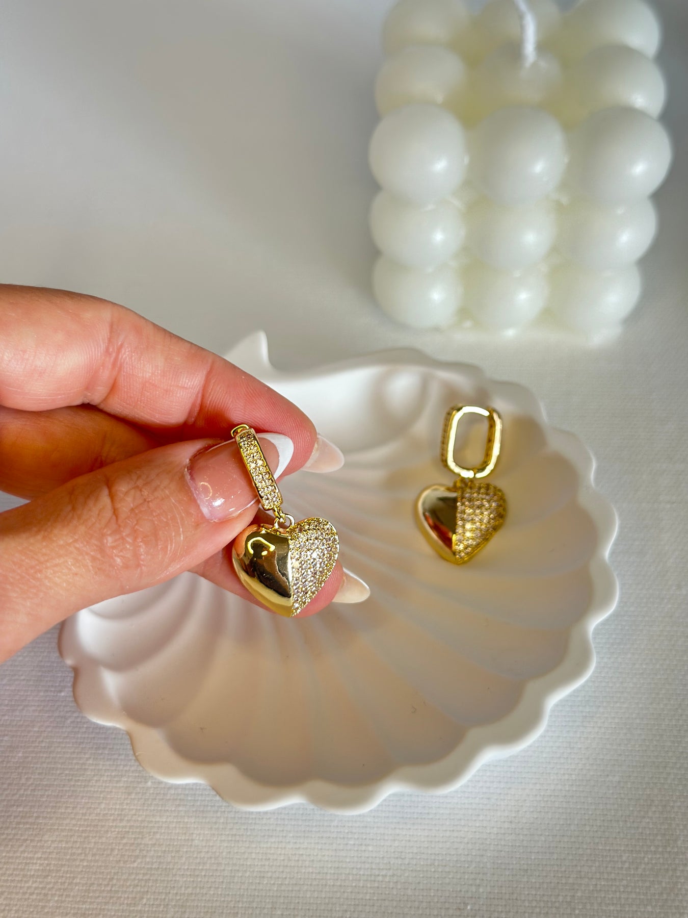 ✨ Detay: Yarı taş kaplamalı kalp formu
