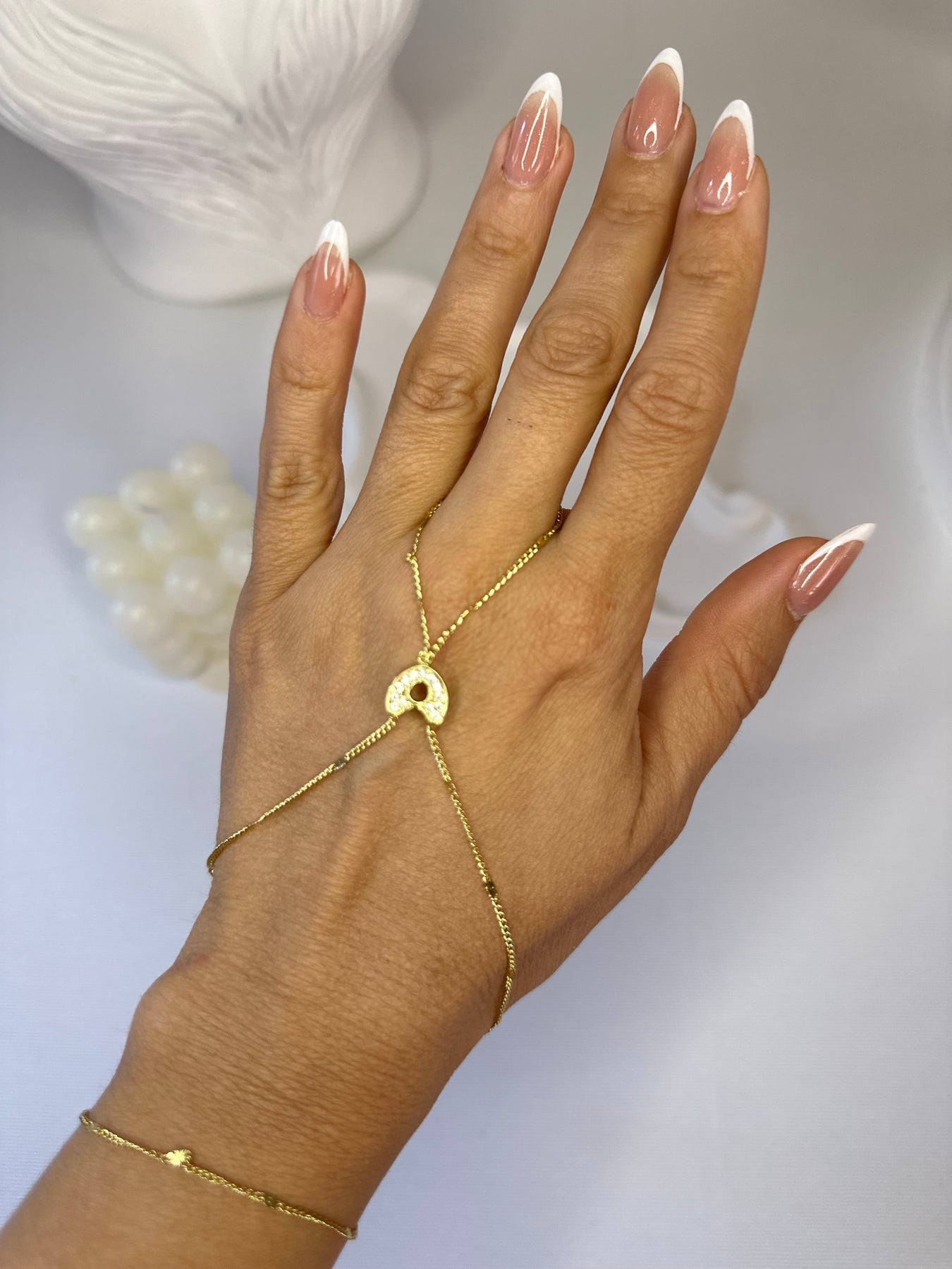 ✨ Detay: Halka formunda taşlı merkez, ince parmak bilezik zinciri