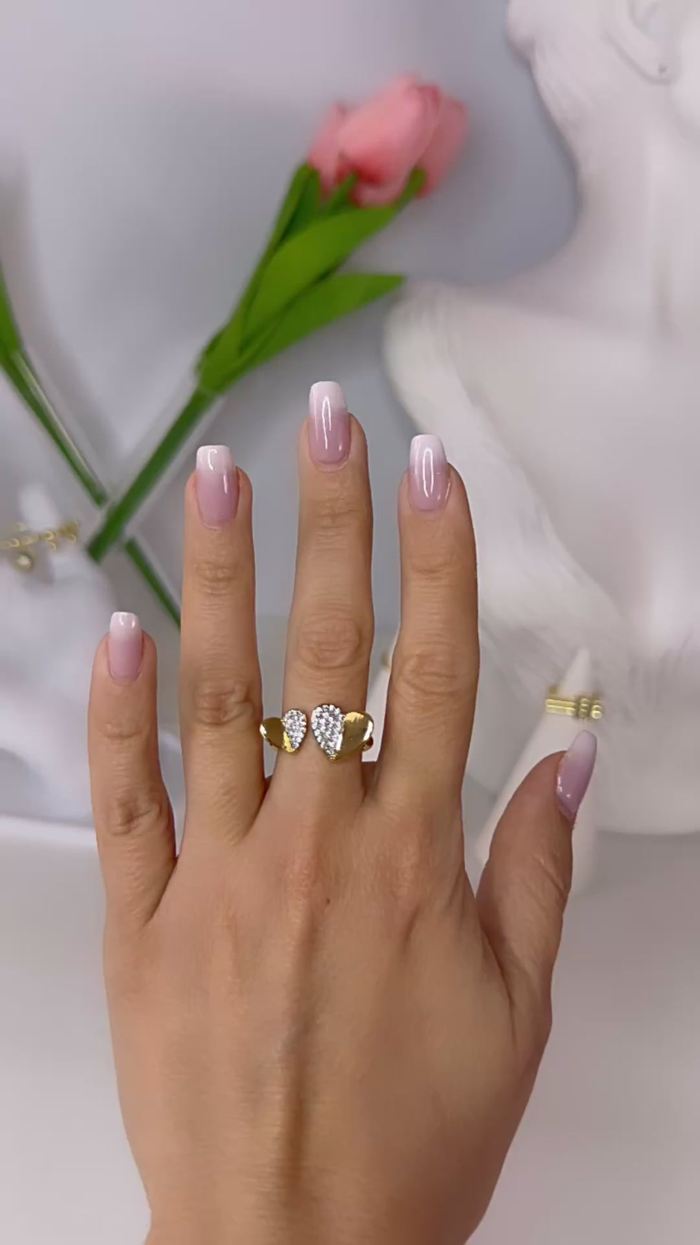 Zirkon Taşlı Ayarlanabilir Kalp Model Yüzük