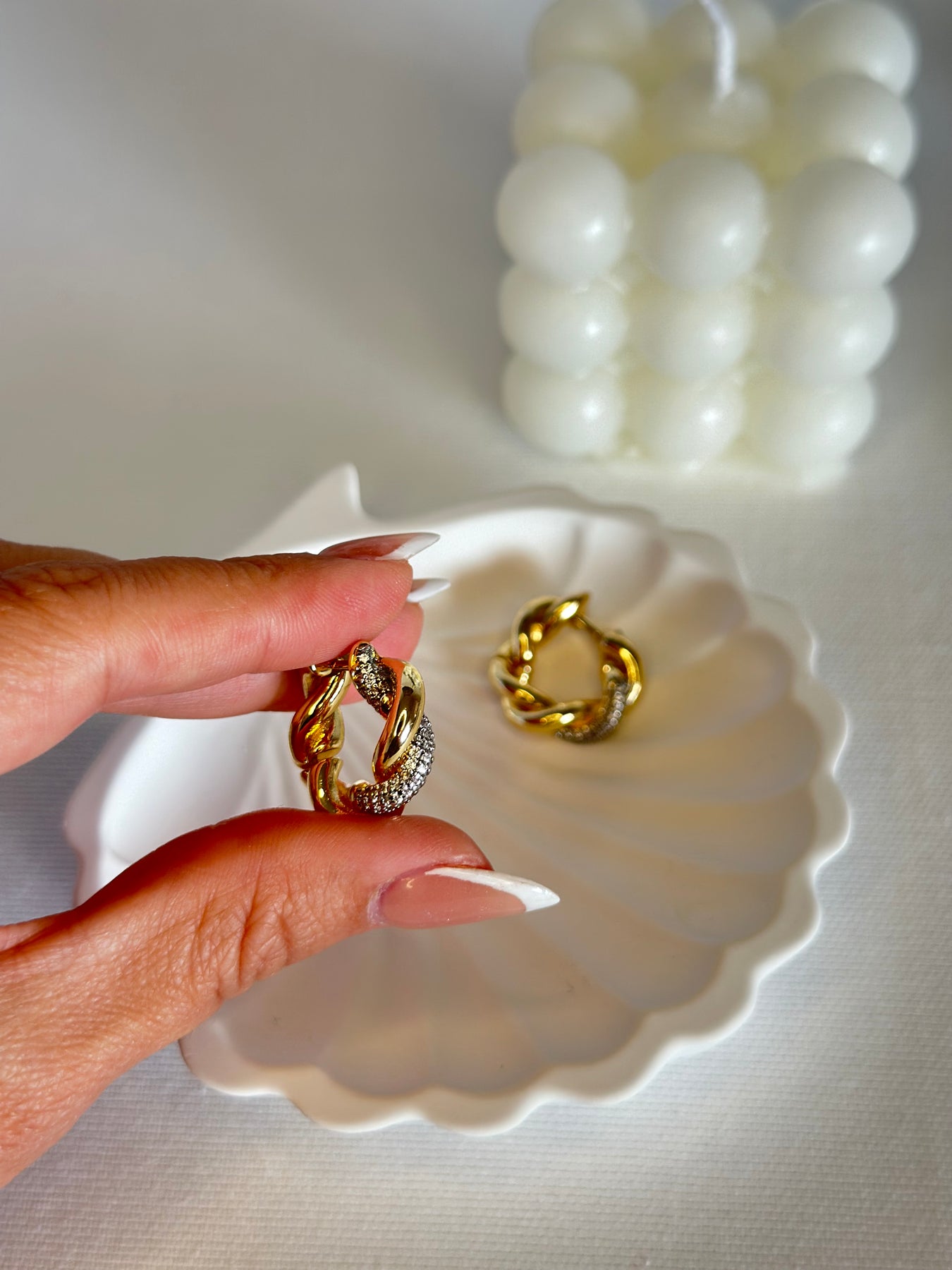 ✨ Detay: Burgulu form, zirkon taş süslemeli