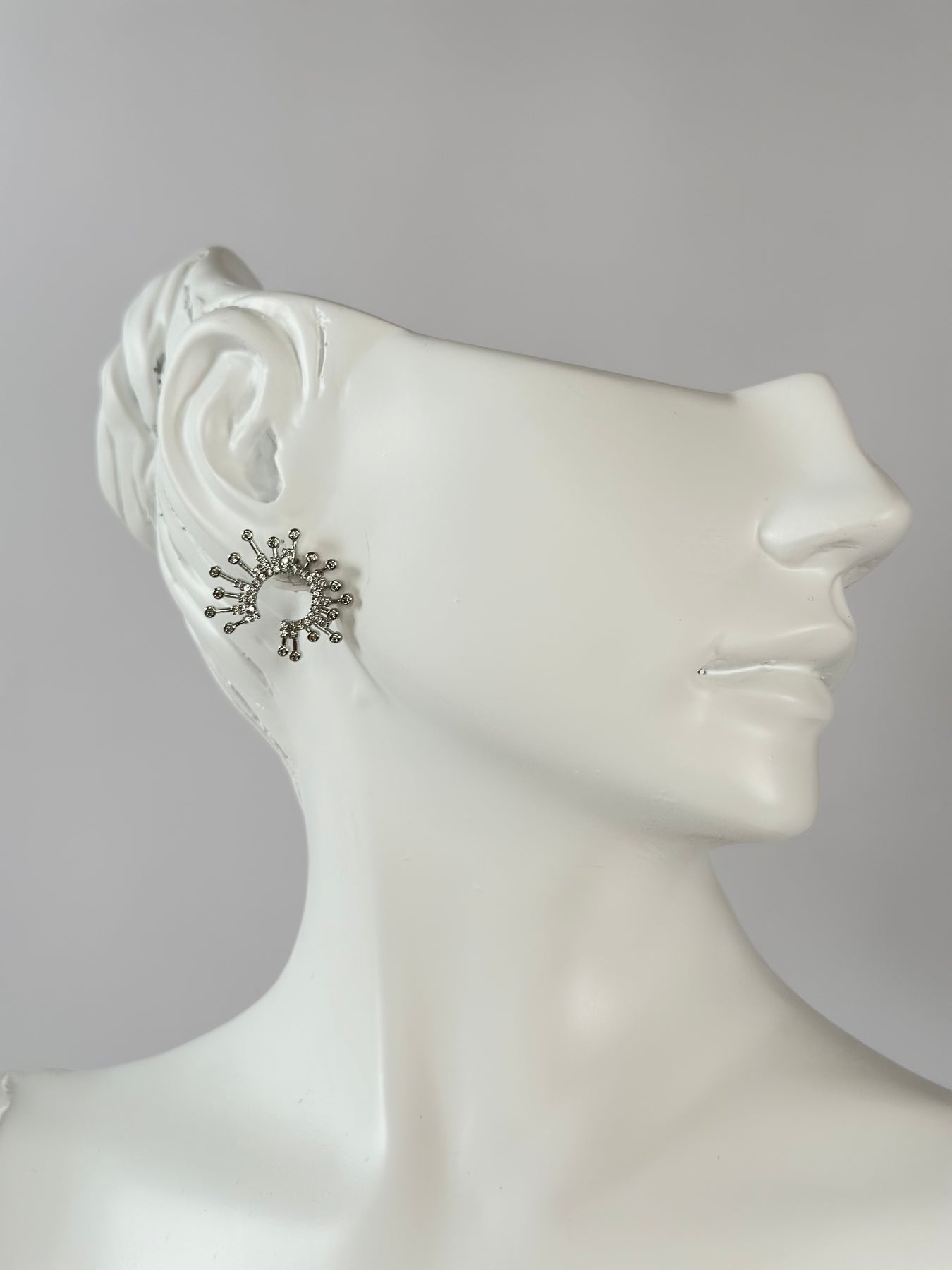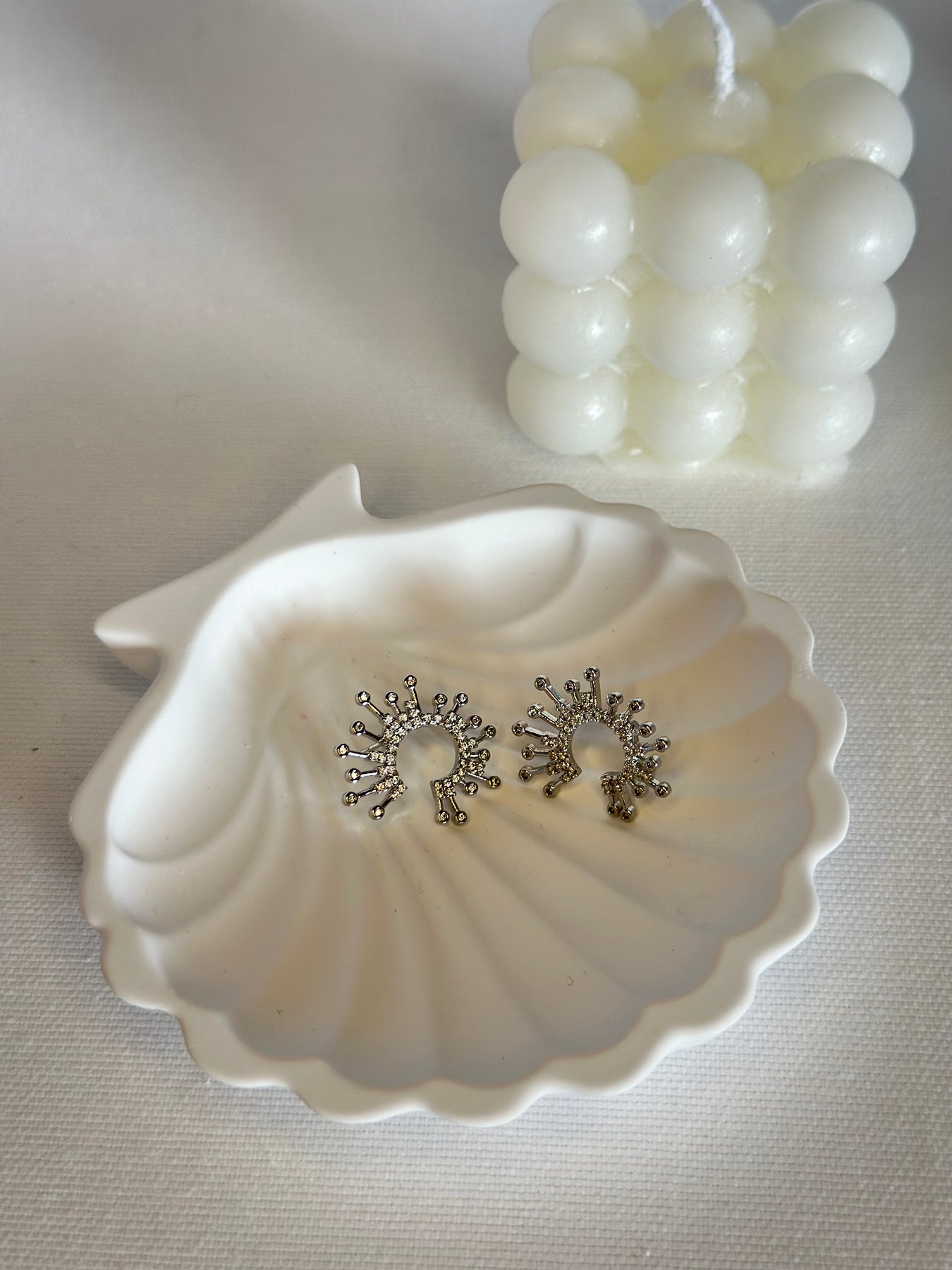 Gümüş tonun zarafetini, özgün güneş formu ile buluşturan bu çelik küpe; dikkat çekici ve modern tasarımıyla fark yaratır. Küçük zirkon taşların yer aldığı dairesel form, kulağınızda ışığı yansıtarak enerjik bir duruş kazandırır. Hem gündüz hem gece kullanıma uygundur.