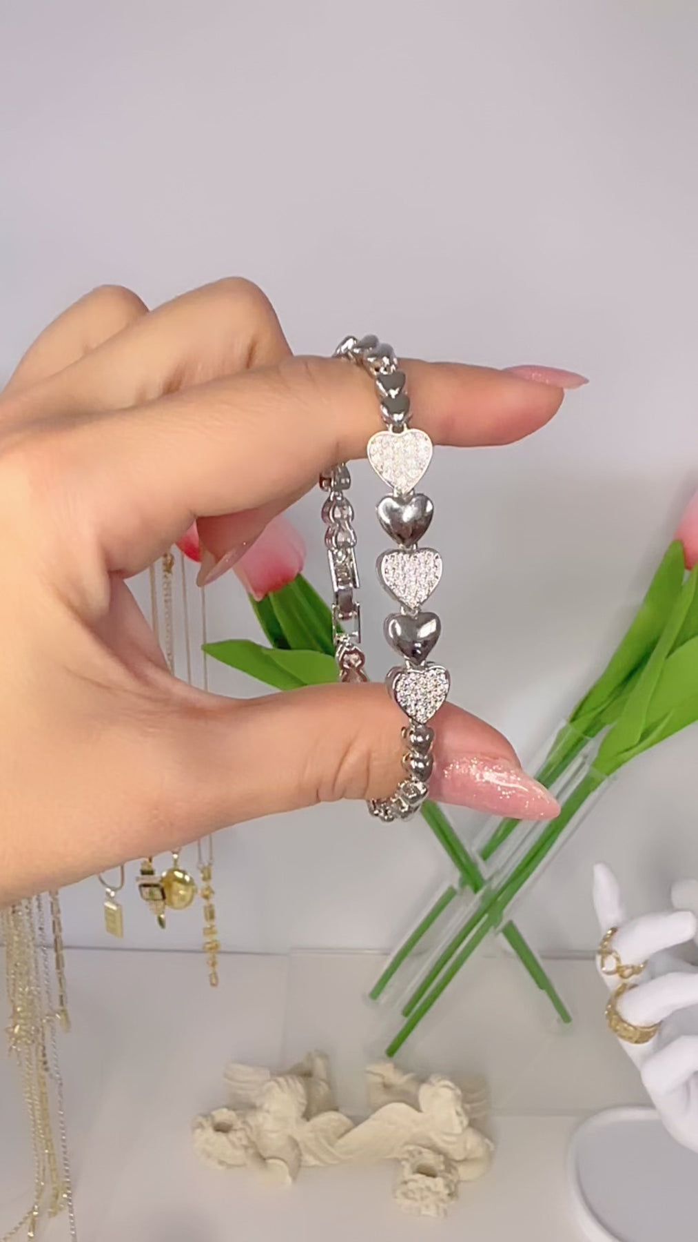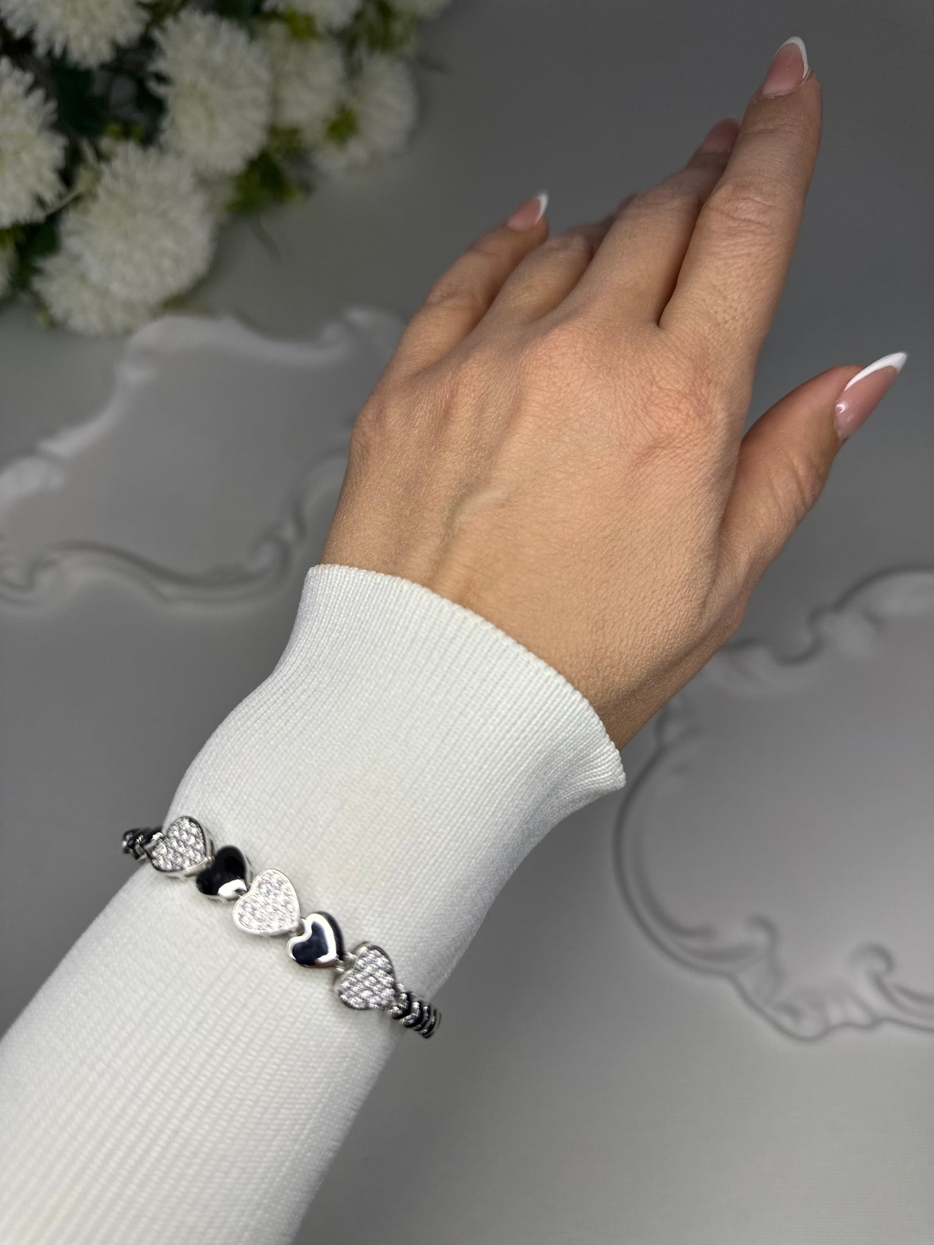 Üç kalp detayıyla zarif bir görünüm sunan bu bileklik, paslanmaz çelik yapısı sayesinde uzun süre parlaklığını korur. Gümüş tonuyla hem günlük kullanıma hem özel gün kombinlerine kolayca uyum sağlar.